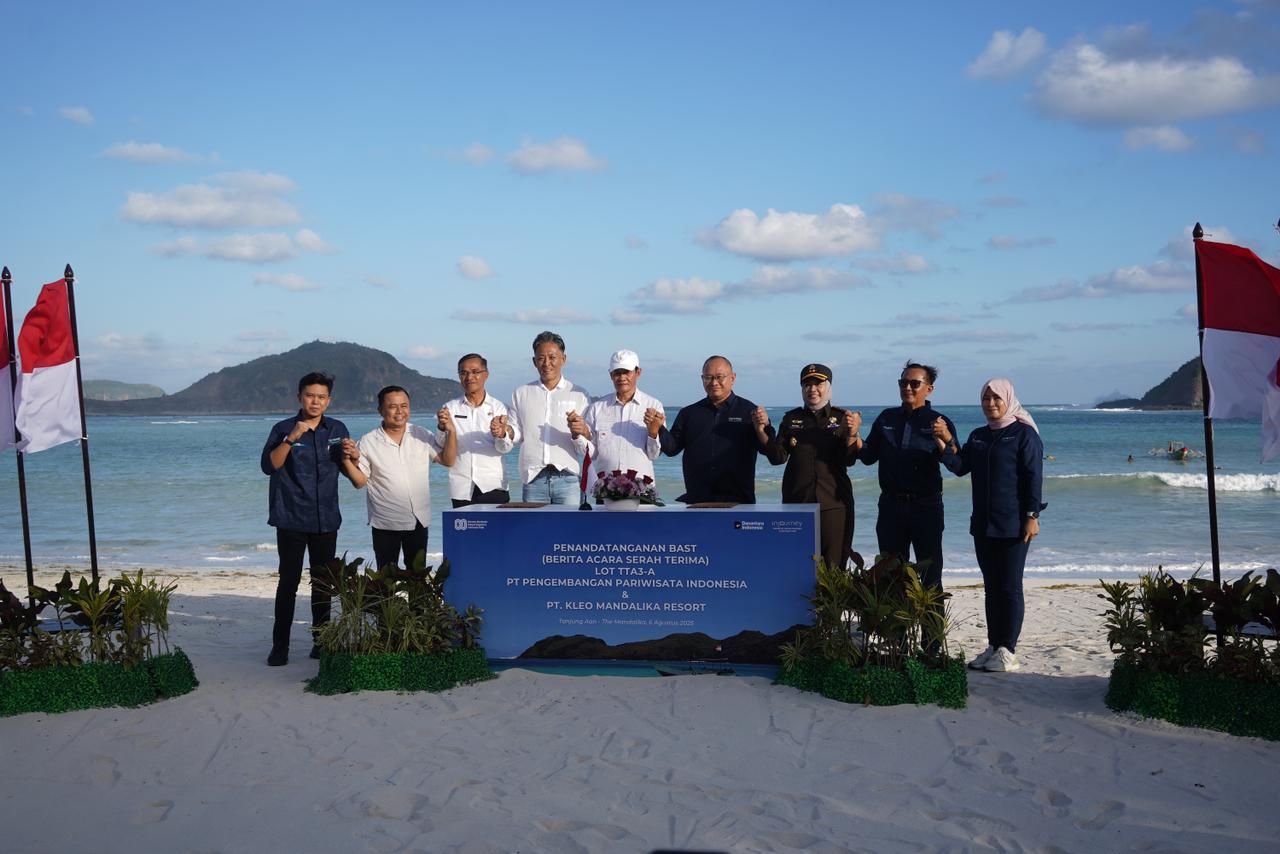 Lombok – InJourney Tourism Development Corporation (ITDC) resmi menyerahkan lahan Lot TTA3-A di Kawasan Ekonomi Khusus (KEK) Mandalika kepada PT. Kleo Mandalika Resort untuk pembangunan hotel bintang lima berkonsep Luxury Brand Collection. Serah terima dilakukan melalui penandatanganan Berita Acara Serah Terima (BAST) pada Rabu, (6/8) di Tanjung Aan, disaksikan oleh jajaran Forum Koordinasi Pimpinan Daerah (Forkopimda) Kabupaten Lombok Tengah.