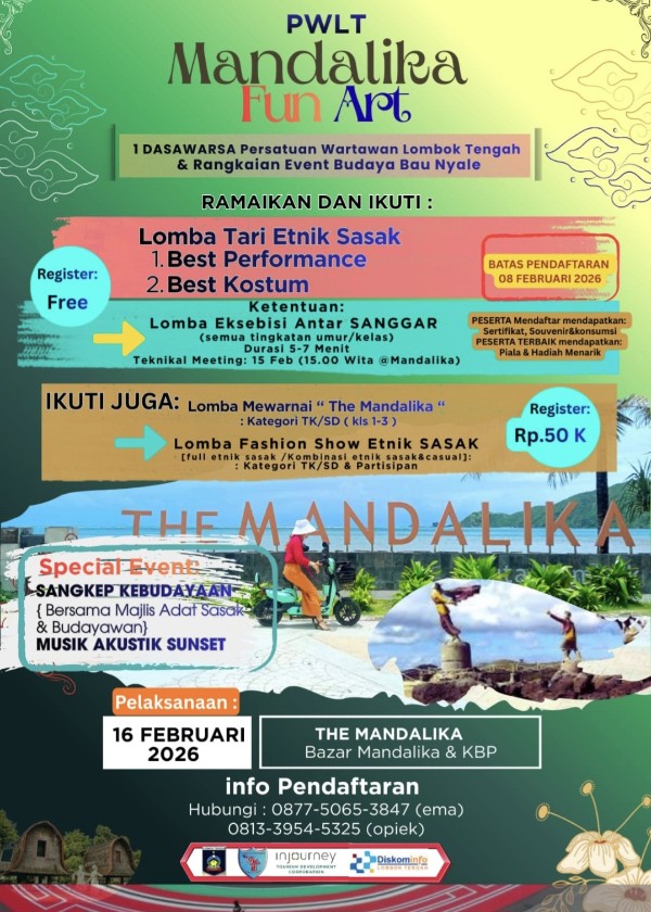 LOMBOK TENGAH – Persatuan Wartawan Lombok Tengah (PWLT) bersiap menyulap Kawasan Ekonomi Khusus (KEK) Mandalika menjadi pusat kreativitas anak melalui gelaran PWLT Mandalika Fun Art 2026. Acara yang mengusung konsep “Belajar Sambil Liburan” ini dijadwalkan berlangsung pada Senin, 16 Februari 2026 mendatang.